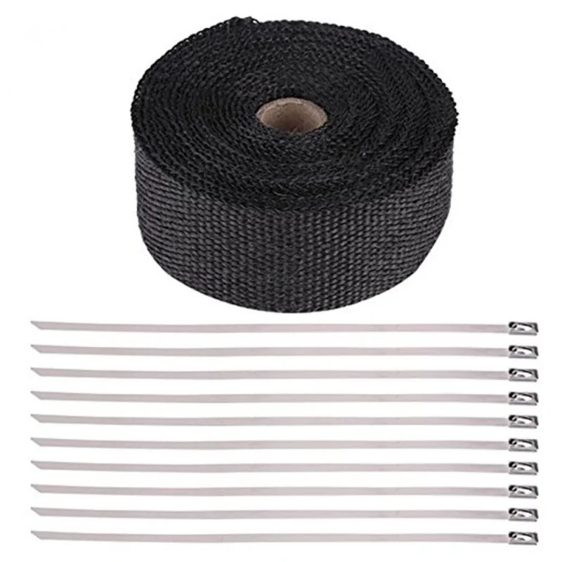 Best 2019 15 M Thermal Tape Exhaust Pipe Header Heat Resistant Wrap Tape With Steel Tires Auto Motorcycl
