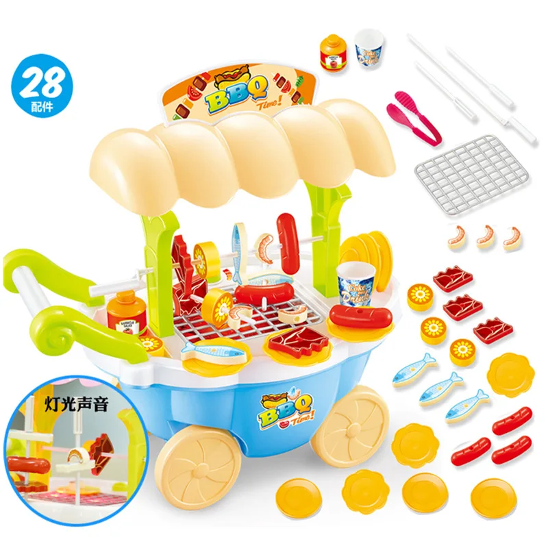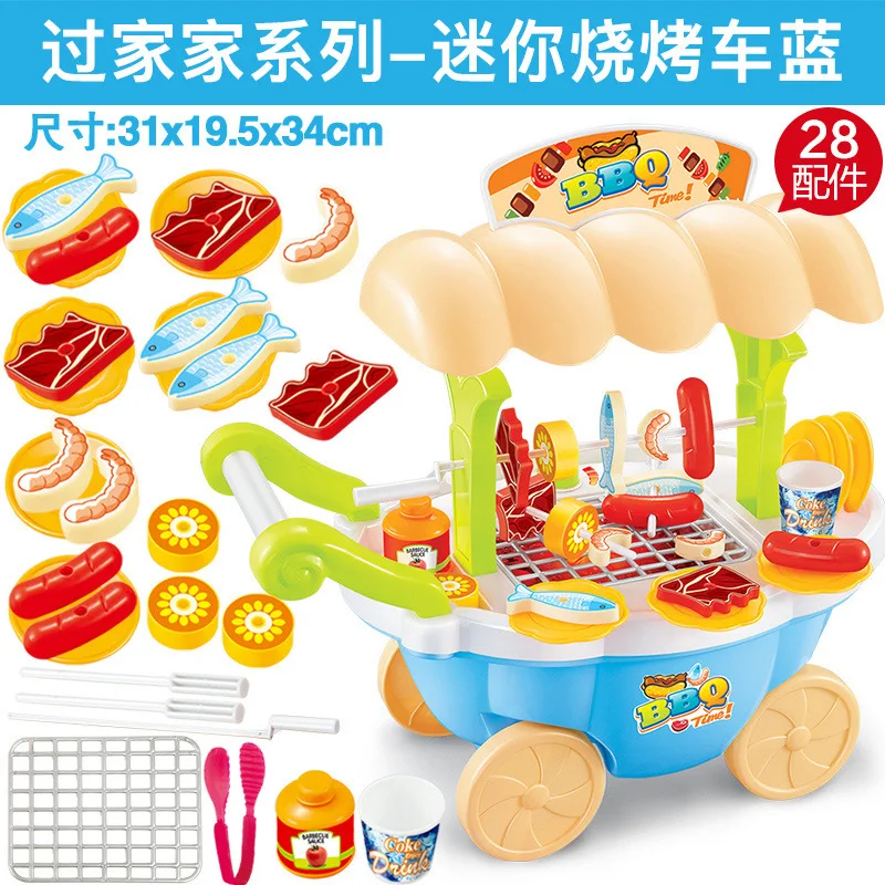 BEST QUALITY Children Electric Multi-functional Mini Model BBQ Barbecue Grills Cart Play House Kitchen Tableware