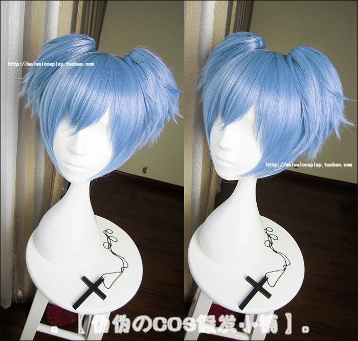HIGH QUALITY Assassination Classroom Shiota Nagisa Short Blue Ponytails Heat Resistant Hair Cosplay Costume Wig