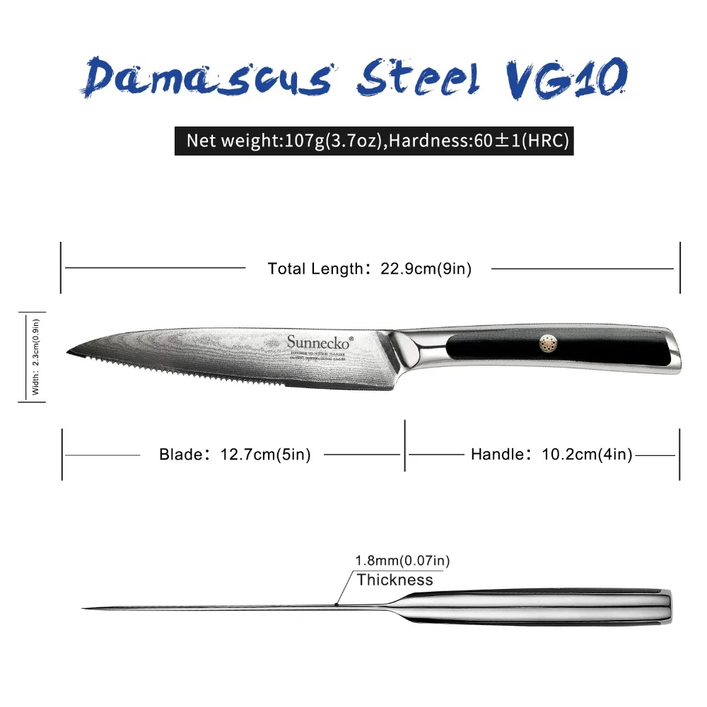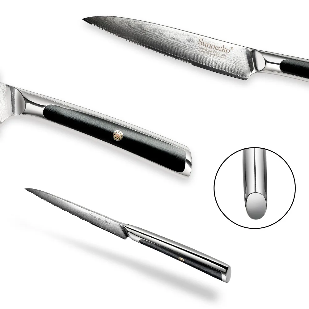 BEST SUNNECKO 5" Damascus Steel Steak Knife Japanese VG10 Core Blade Kitchen Knives G10 Handle Chef's Ve