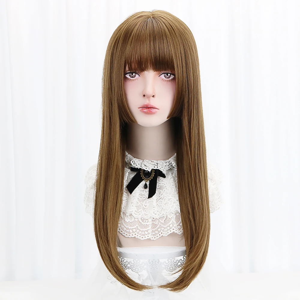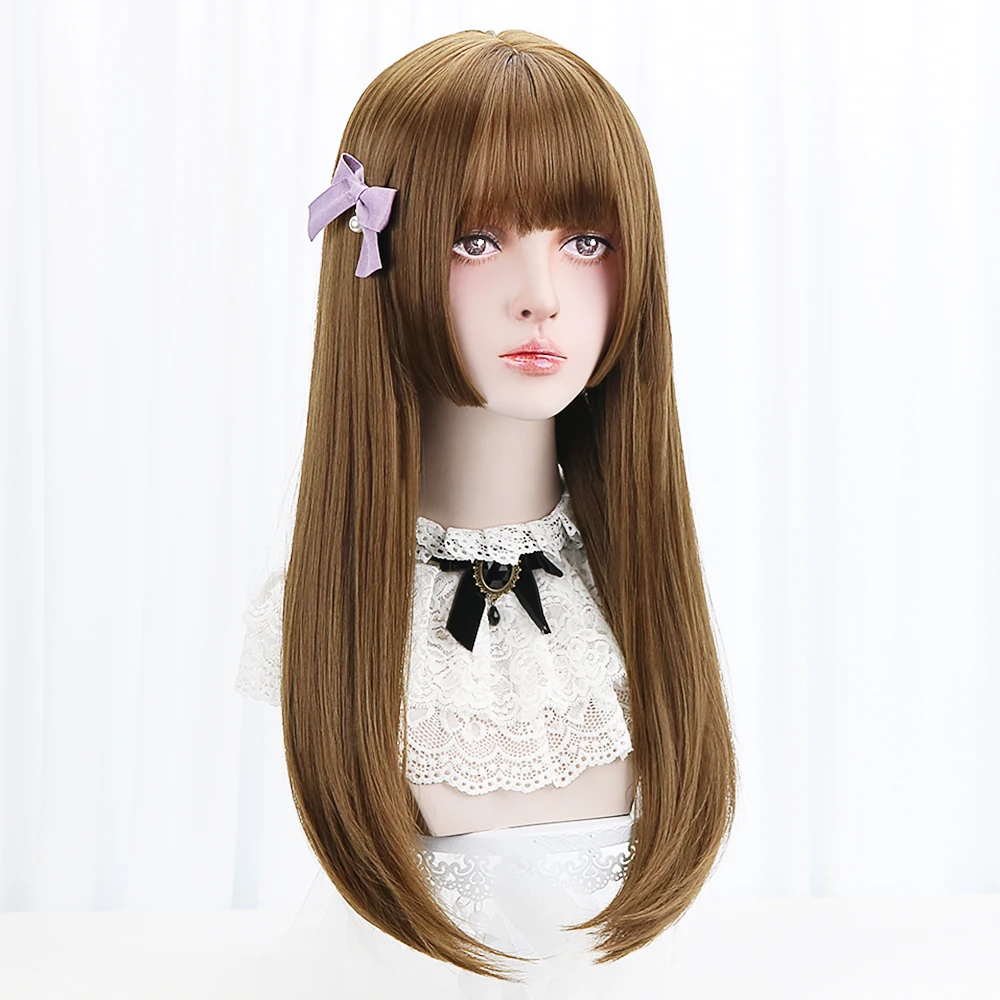 26"Long Straight Cosplay Lolita Wigs With Bangs Brown Ombre Synthetic Hair Japan Harajuku Cosplay W